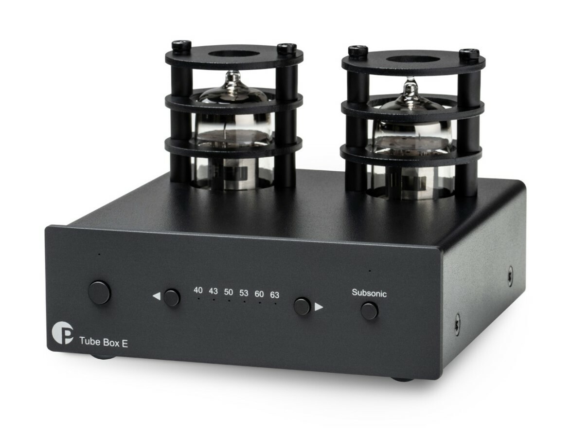 Elektronkový předzesilovač TUBE BOX E je osazený osvědčenými elektronkami ECC 83 (12AX 7A). K dispozici je i možnost aktivace nebo deaktivace subsonického filtru.
