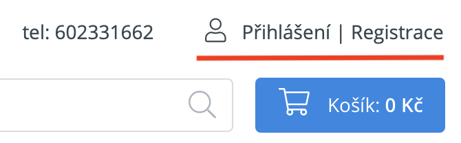 Tlačítko pro registraci najdete v pravém horním rohu E-shopu.