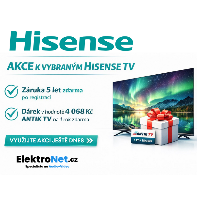 - Ovládání: Hisense Solar Remote, hlasové povely